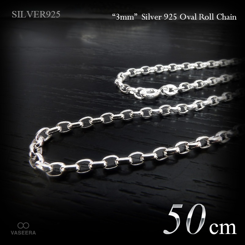 3mm幅 オーバル・ロールチェーン(甲丸チェーン) 50cm シルバー925 【SILVER925 /チェーンネックレス】