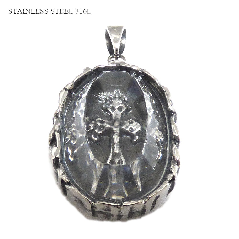 キリスト十字 / クロス 全面クリスタルガラス仕上げ アンティーク調 ステンレス ペンダントトップ / メンズ 【サージカルス...