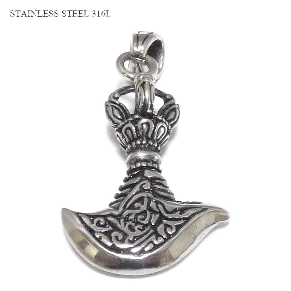 密教法具 金剛杵 カルタリ(曲刃/曲斧) アラベスク ブラックポリッシュ仕上げ ステンレス ペンダントトップ / メンズ 【サ...