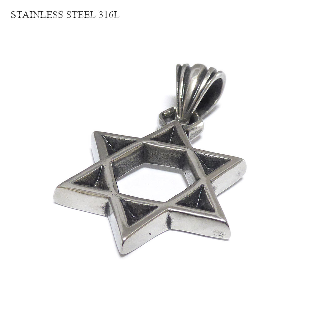 31mm ヘキサグラム(六芒星) シンプルスタイル ブラックポリッシュ仕上げ ステンレス ペンダントトップ / メンズ 【サージカ...