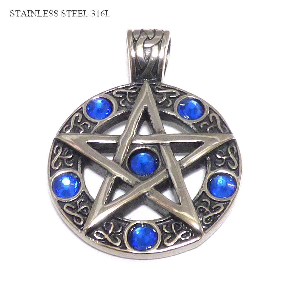 37mm サファイアジルコニア埋込み マジックサークル(魔法円/魔方陣/五芒星) ステンレス ペンダントトップ/ メンズ/レディー...