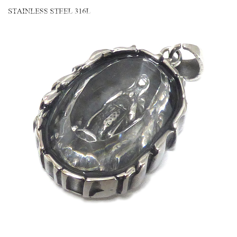聖母マリア 全面クリスタルガラス仕上げ アンティーク調 ステンレス ペンダントトップ / メンズ 【サージカルステンレス】
