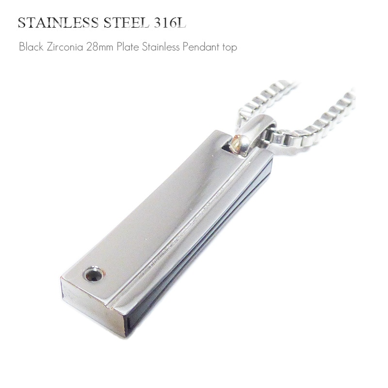 ブラックジルコニア埋め込み 28mm リバース・カーヴプレート ステンレス ペンダント トップ 【ステンレス・スチール316L/サ...