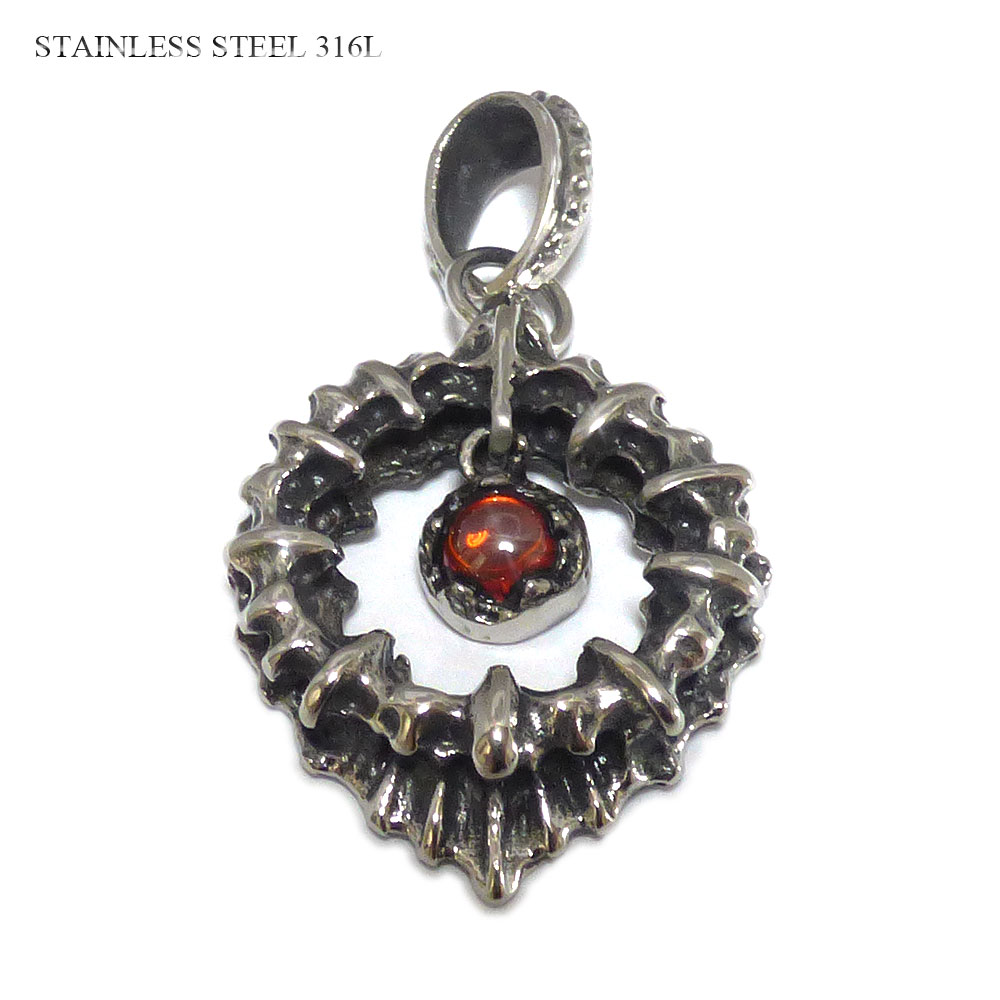 レッドジルコニア埋込み ゴシック調フレア ブラックポリッシュ仕上げ ステンレス ペンダントトップ / メンズ 【サージカルステン...