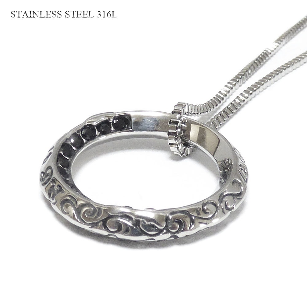 ブラックジルコニア埋込み アラベスク キーリング ステンレス ペンダントトップ / メンズ 【サージカルステンレス】