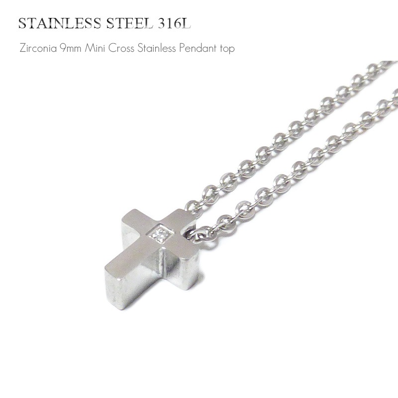 ジルコニア埋め込み 9mmミニクロス ステンレス ペンダント/ レディース 【ステンレス・スチール316L/サージカルステンレス】