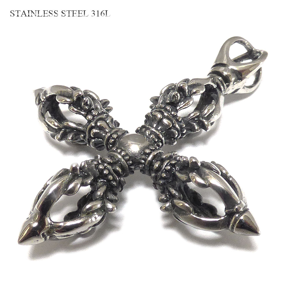 密教法具 54mm 金剛杵(十字ヴァジュラ) 羯磨(カツマ) ブラックポリッシュ仕上げ ステンレス ペンダントトップ / メンズ ...