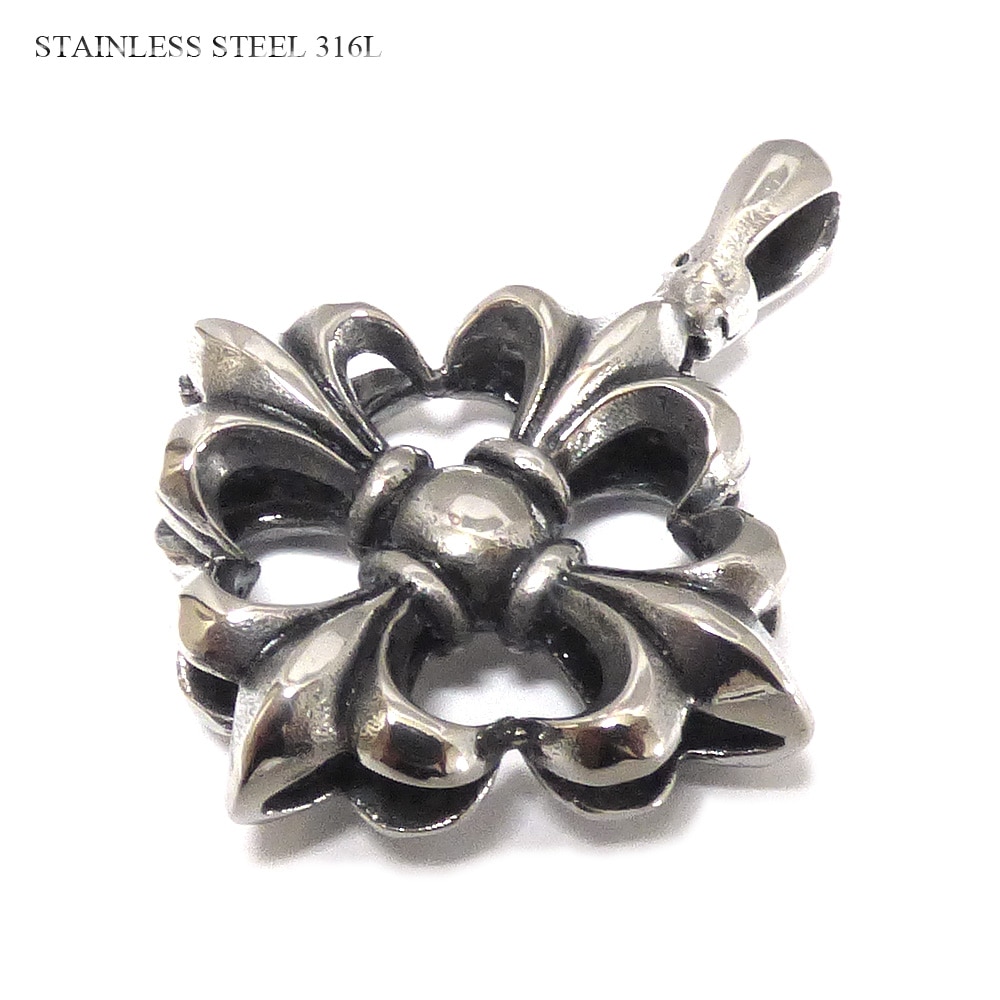 ユリ紋章ゴシック調クロス ブラックポリッシュ仕上げ ステンレス ペンダントトップ/ メンズ 【サージカルステンレス】