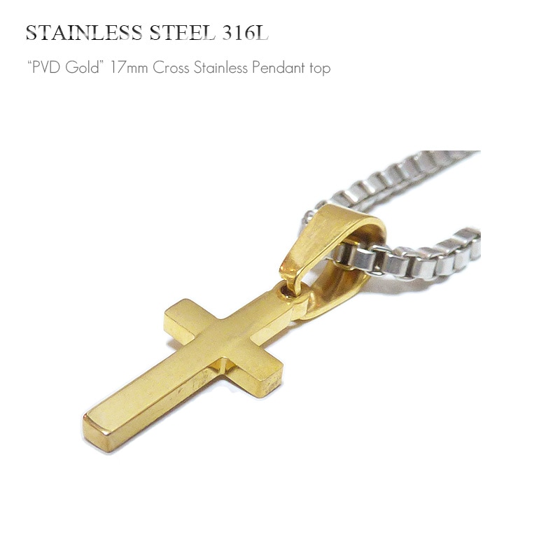 PVDゴールドコーティング 17mm シンプルクロス ステンレス ペンダント トップ 【ステンレス・スチール316L/サージカルス...