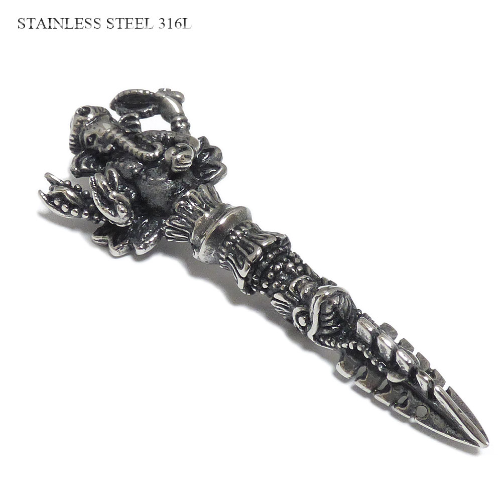 密教法具 60mm 金剛杭(プルパ) ヒンドゥーガネーシャ ブラックポリッシュ仕上げ ステンレス ペンダントトップ / メンズ ...