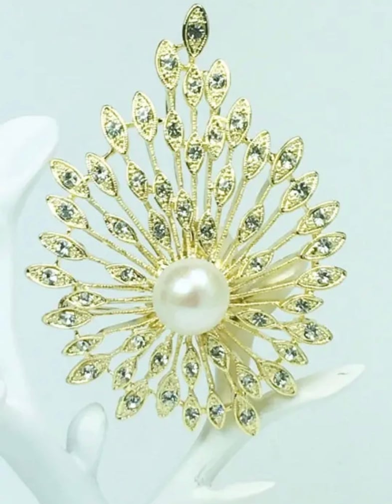 パールブローチ ゴールドリーフ パール10mm