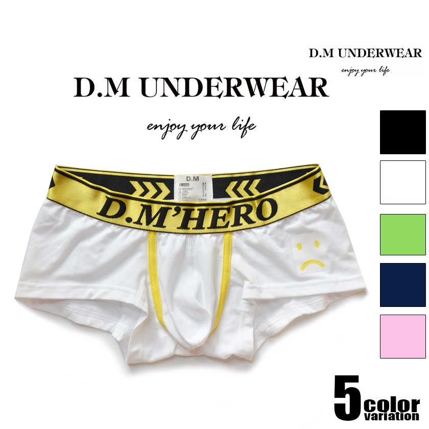 DM/ディーエム への字口 ワンポイント ボクサーパンツ ローライズ 男性下着 メンズ パンツ 薄手