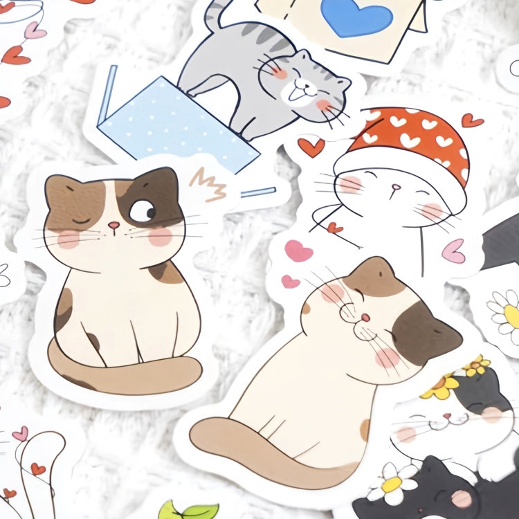 即日出荷 フレークシール かわいい 猫 シール 海外 コラージュ 素材 ネコ イラストステッカー ダイカット シール ねこ 小動...