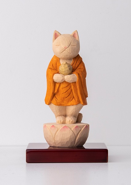 木彫りの誕生釈迦猫 袈裟を着た猫仏さま