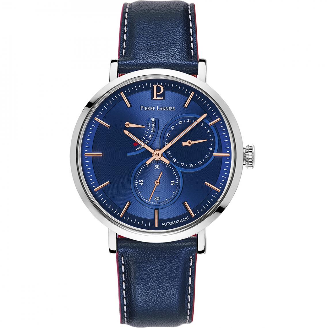 ピエールラニエ オートマティック 革ベルト メンズ 腕時計 ブランド パワーリザーブ ネイビー トリコロール シルバー