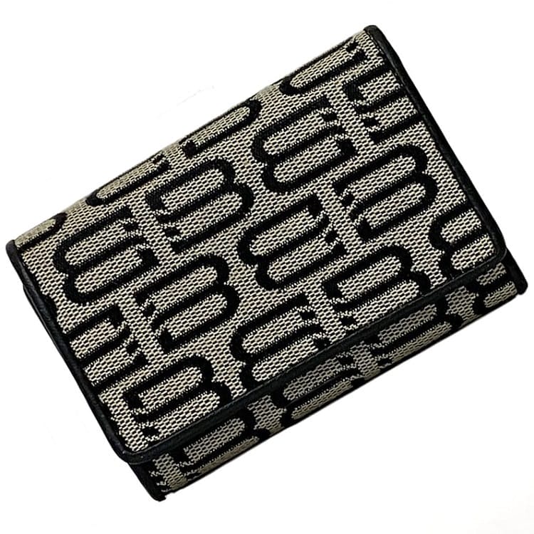 バレンシアガ 6連 キーケース 三つ折り 財布 ec-22417 グレー ブラック 070070 美品 キャンバス レザー 中古 ...