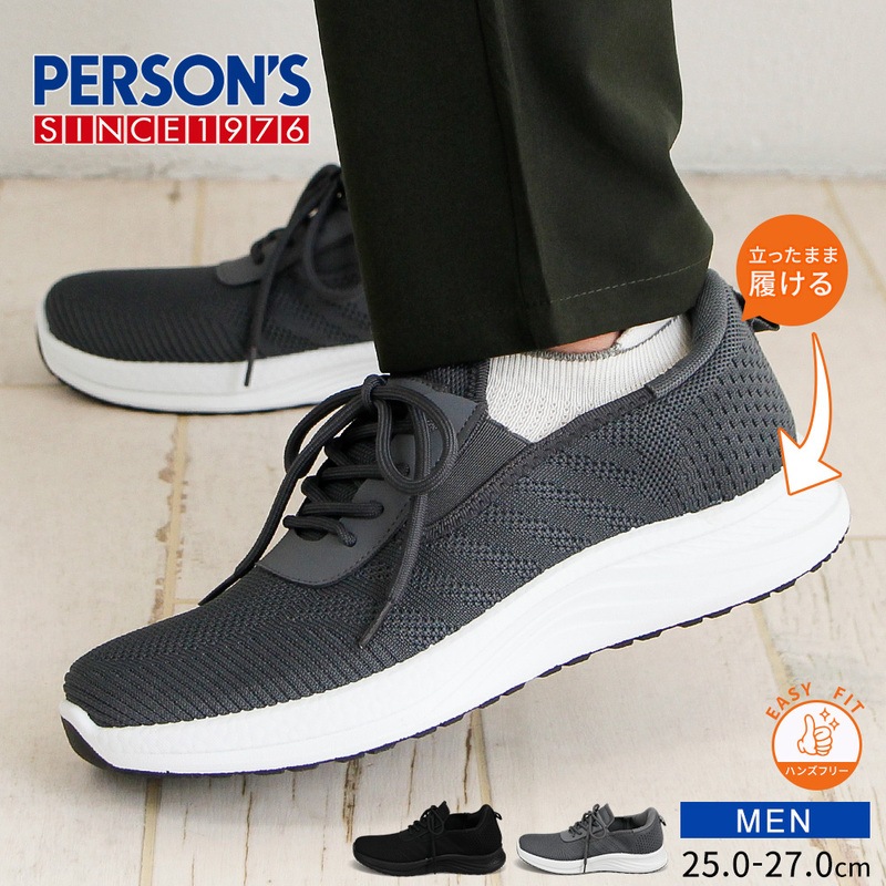 メンズ スニーカー 黒 ハンズフリー シューズ ローカット ジム 靴 スリッポン 軽い ブラック グレー パーソンズ PERSO...