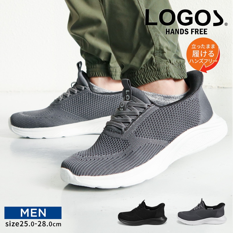 LOGOS メンズ スリッポン ハンズフリー 立ったまま履ける 手を使わない ニットスニーカー メッシュ ローカット 軽い ブラッ...