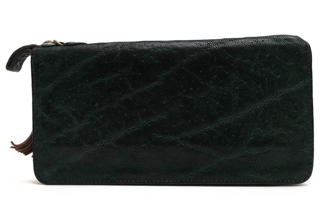 KC\'s KRW001A / ケイシイズ エレファント 象革 小銭入れあり ラウンドジップ ラウンドファスナー グリーン 緑 長...