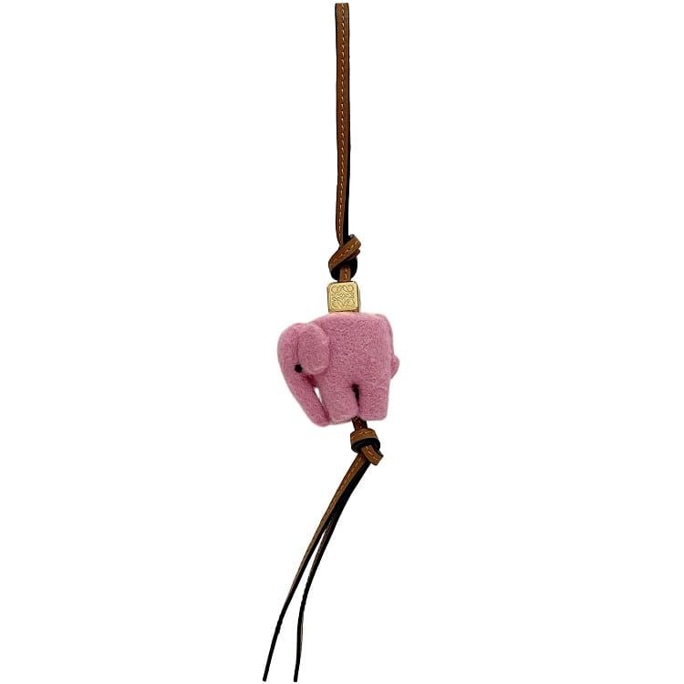 ロエベ エレファント バッグチャーム ピンク ブラウン アナグラム C880232X03 美品 レア フェルト レザー 中古 LO...