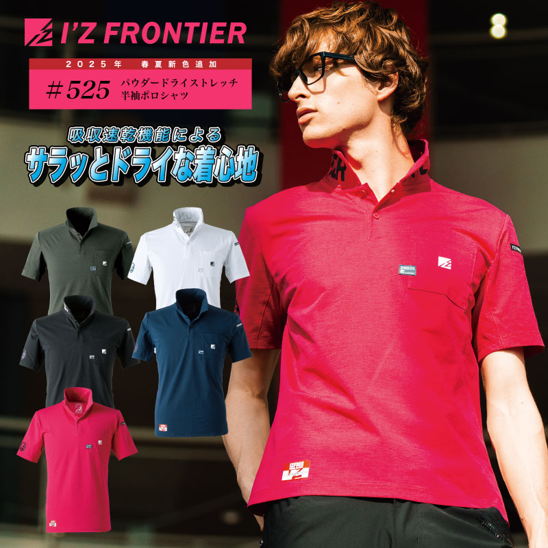 アイズフロンティア 525 P.D.ストレッチ半袖ポロシャツ 春夏 新色 パウダードライ ストレッチ 半袖ポロシャツ アイズ ドラ...