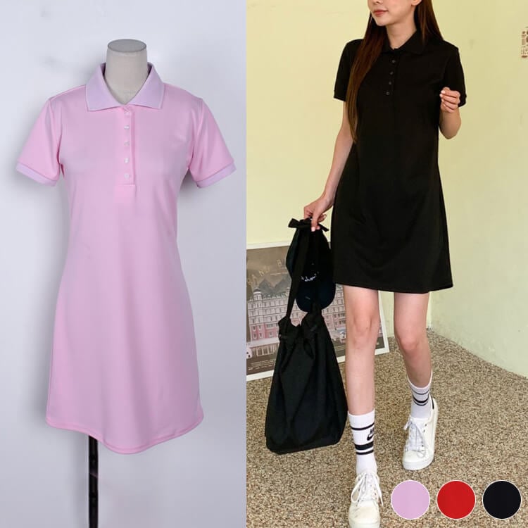韓国 クールエア機能性 半袖 ポロシャツ ワンピース
