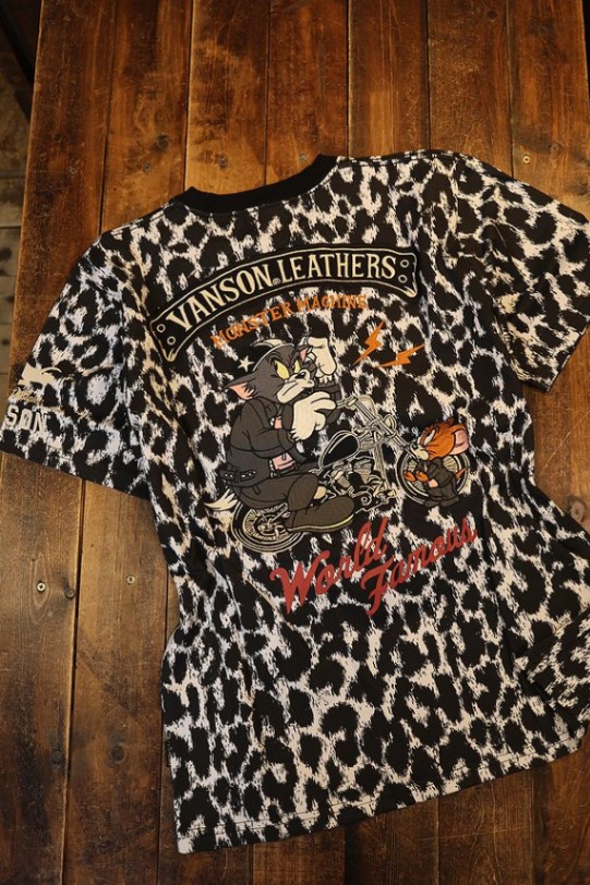 VANSON×Tom and Jerry トムとジェリーコラボ TJV-2317 天竺半袖Tee バイク レオパード