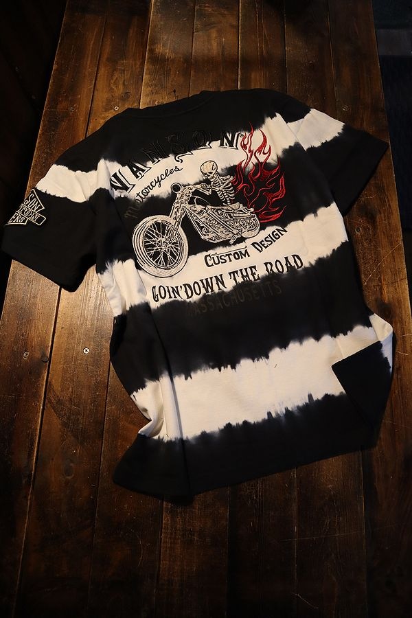 VANSON バンソン NVST-2219 天竺半袖Tシャツ スカル バイク刺繍Tシャツ タイダイボーダー