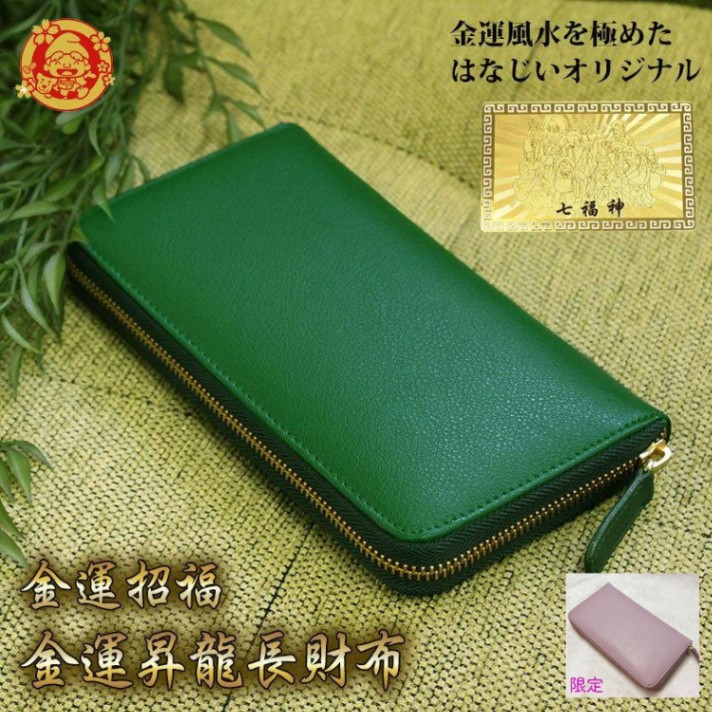 財布 長財布 【返品不可商品】 箱入 開運 金運 風水 金運アップ 招福 昇龍 ラウンドファスナー 風水ラッキーカラー グリーン ...