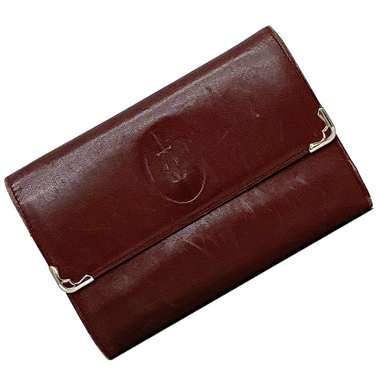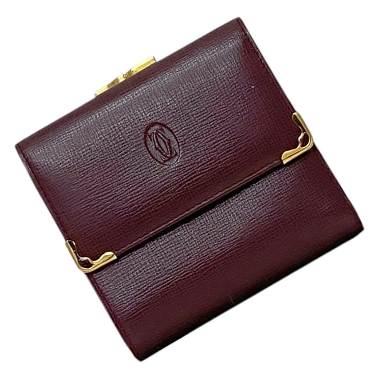 カルティエ 三つ折り がま口 財布 ec-21807 ボルドー マスト L3000039 ガマグチ コンパクト レザー 中古 Ca...