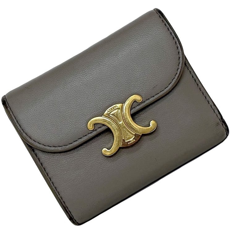 セリーヌ 三つ折り 財布 ec-23083 ベージュ トリオンフ ロゴ レザー 中古 S-AT-3261/S-FG-3281 CE...