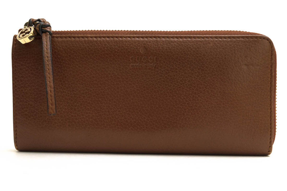 GUCCI 323403 493075 / グッチ 牛革 カーフ 小銭入れあり L字ファスナー シボ革 シュリンクレザー ブラウン...