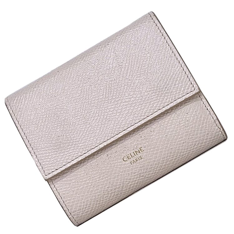 セリーヌ 三つ折り 財布 スモール トリフォールド ベージュ 10B573BEL 美品 レザー 中古 W-IE-4169 CELI...