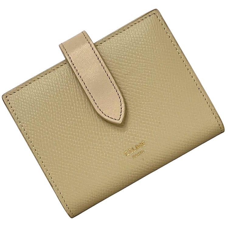 セリーヌ 二つ折り 財布 スモール ストラップ ウォレット f-24264 クリーム ベージュ 10H263BRU.03LW 美品...