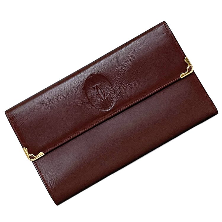 カルティエ 三つ折り 長財布 ec-24035 ボルドー マスト 美品 レザー 中古 Cartier 財布 ヴィンテージ 定番 人...