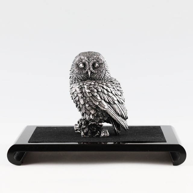 薩摩錫器 錫 置物 ふくろう 台付 イブシ加工 189-2 薩摩錫器工芸館 代引不可