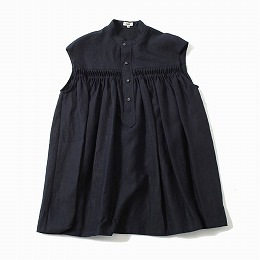 Scye サイ レディース リネン ピンタックノースリーブブラウス ネイビー