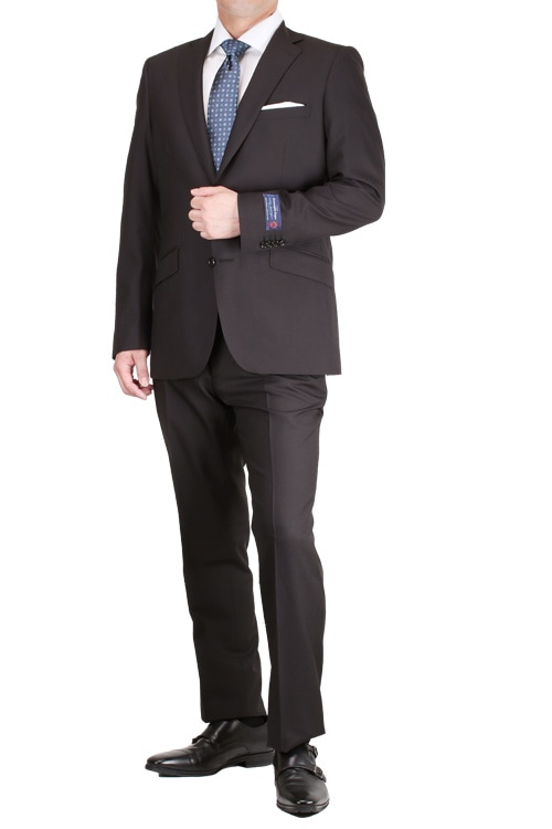ロロピアーナ スーツ LoroPiana Super130\'s 春夏 ブラック無地2つ釦 シングル