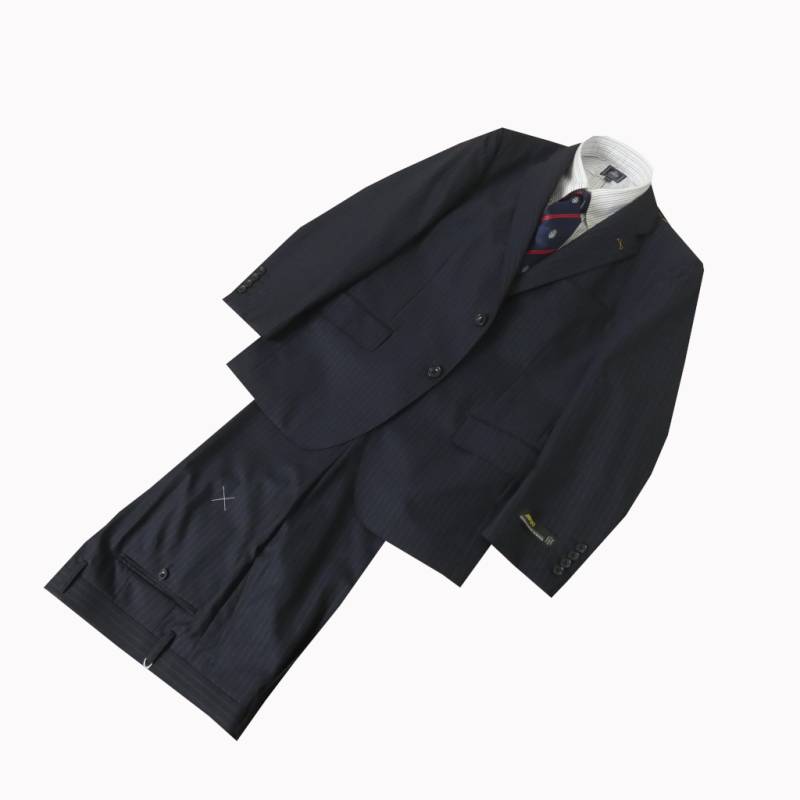 ゼニア スーツ Ermenegildo Zegna COOLEFFECT 春夏 ネイビー ミックスストライプ 2つ釦 シングル A...