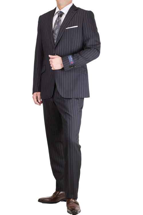 スーツ メンズ 秋冬春 シングルスーツ 2つボタン ダディコスタ(Dady Costa) ビジネススーツ ブラック ストライプ 黒...