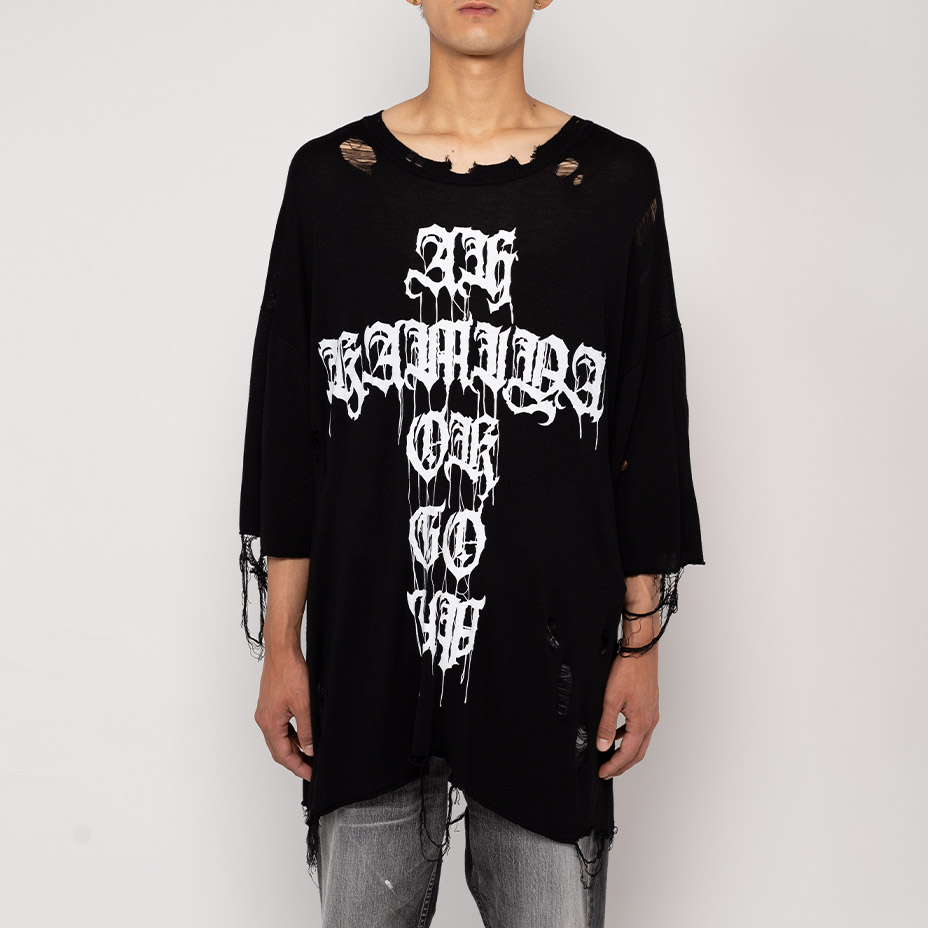 Words Printed Knit Tee [ G12TS051 ] KAMIYA / カミヤ