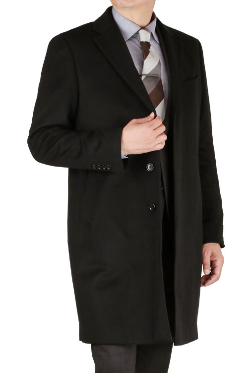 カシミヤコート メンズ チェスターコート 秋冬 ブラック カシミヤ100% ピュアカシミヤ
