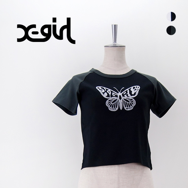 【SOLDOUT】X-girl エックスガール レディース グリッターバタフライ ラグランベビーTシャツ[105253011011...