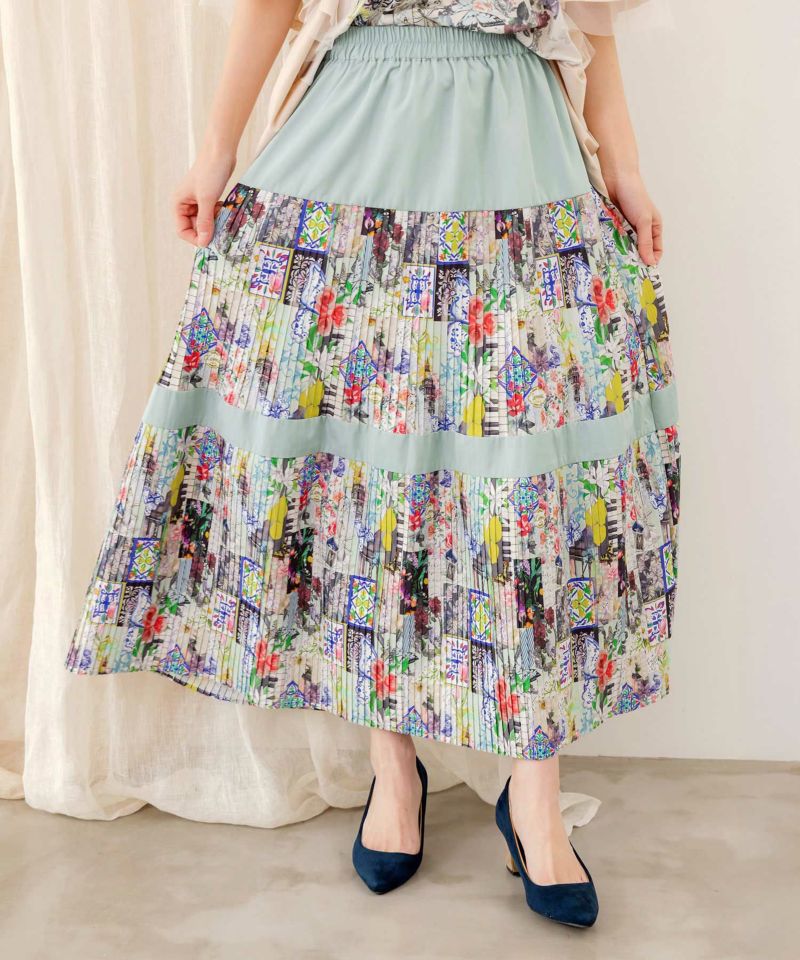 イズスカラー / シチリアイメージプリント ティアードプリーツスカート