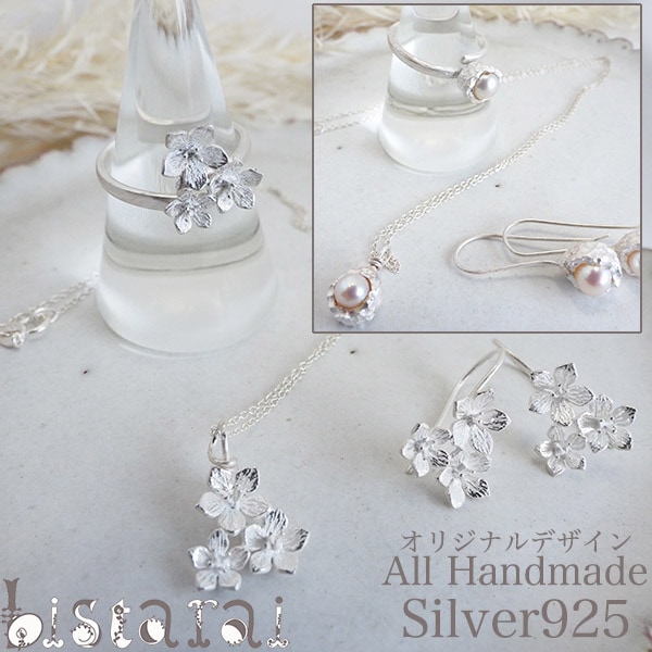 伝統工芸ジュエリー silver925 オリジナルデザインフラワーモチーフハンドメイドアクセサリー指輪 淡水真珠タイシルバーピアス...
