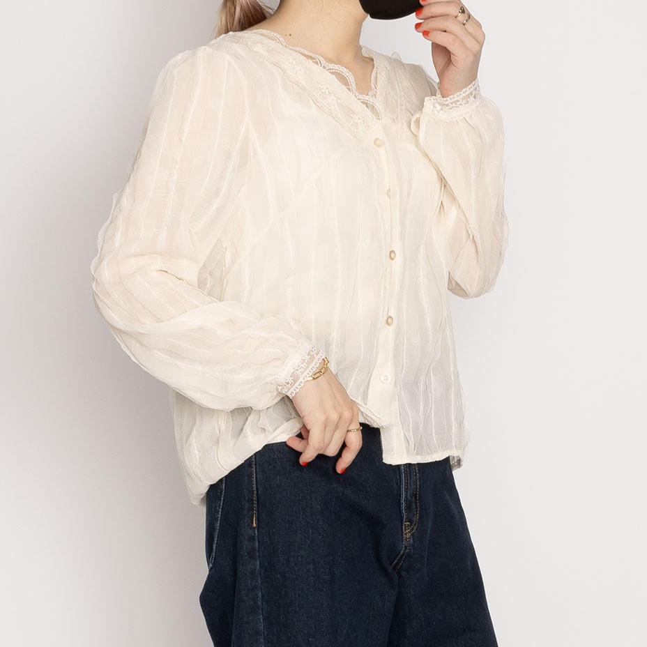 袖リボン シアー ブラウスシャツ [ NXLKMOH-0008 ] SVEC / シュベック