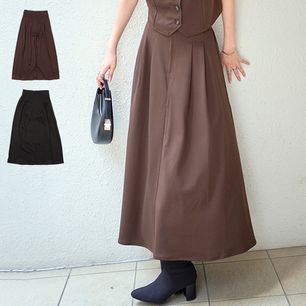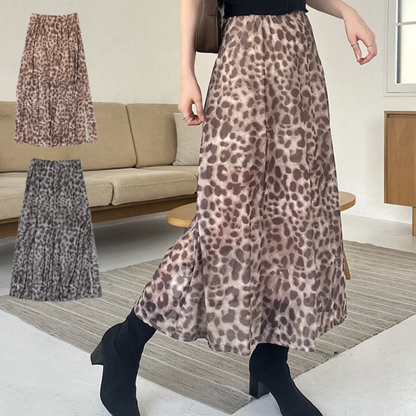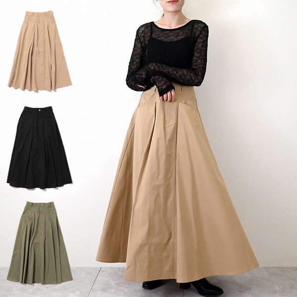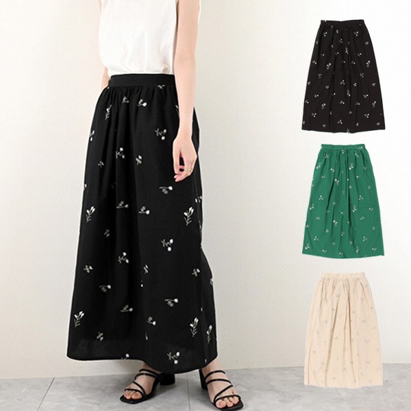 絶妙な配色をコーデの主役に。柄フレアロングスカート