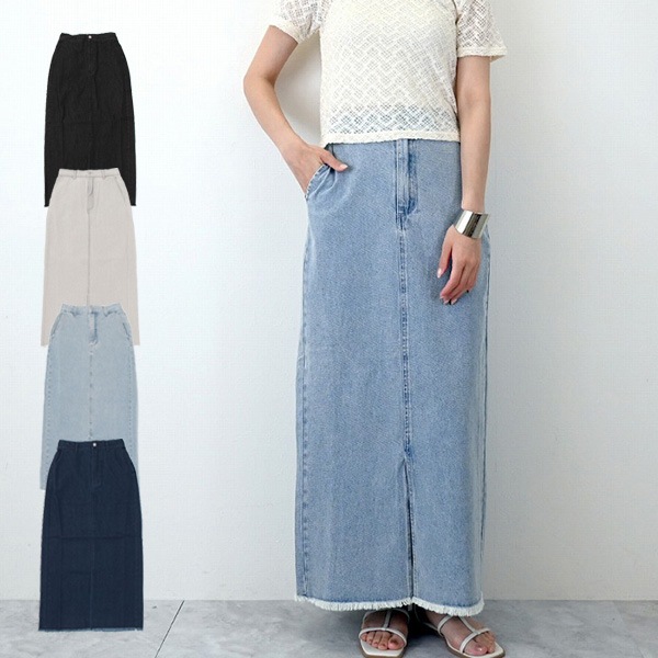 スカート デニム ロング レディース ベイカースカート ストレッチ Aライン 大きいサイズ M L LL 3L 4L デニムスカー...