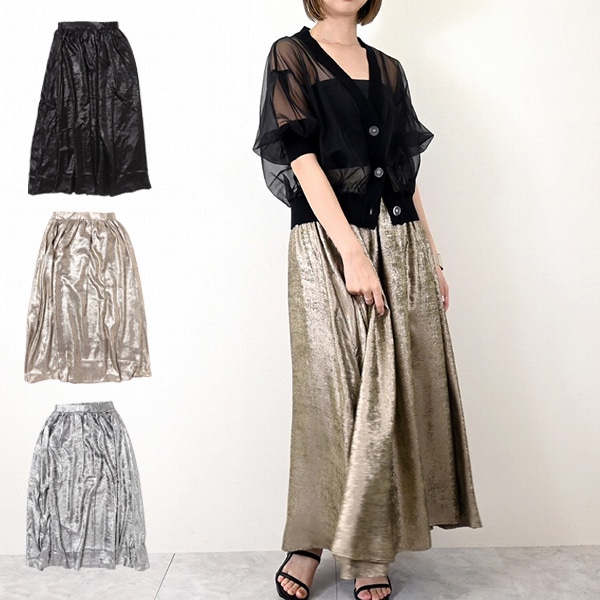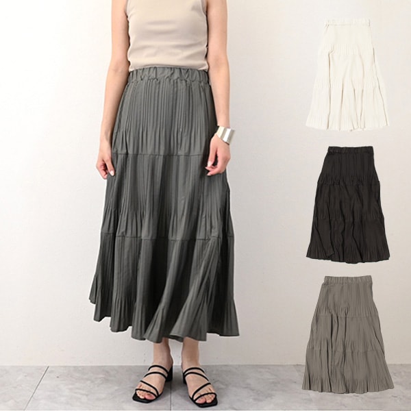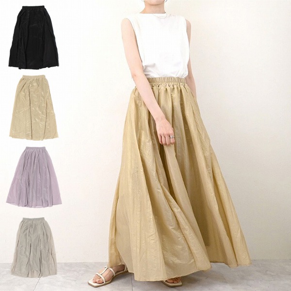 プリーツスカート レディース ロングスカート フレアスカート 踊るように揺れる。フィラメントサテンプリーツスカート ボトムス 静電...