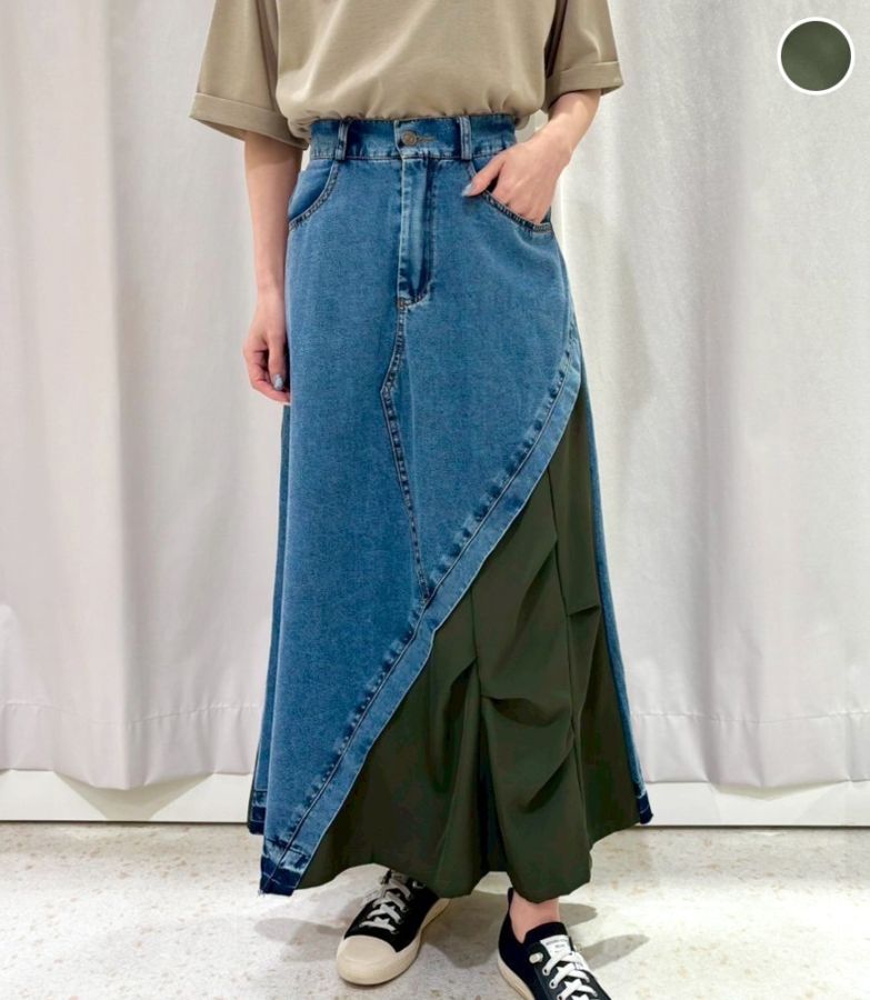 アシメ配色切替デニムスカート